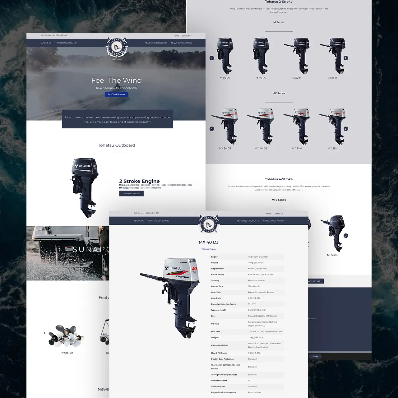 Surapol Marine was established in 1970 by Suthep Technic Co., Ltd. and has been a specialty retailer of boating supplies and marine accessories for more than 5 decades. We are dedicated to provide high-quality products with trusted technology and sleek design from both domestic and international sources to cater to users’ demands and deliver best-in-class customer experience.We are now the exclusive distributor in Thailand of Tohatsu outboard motors, which are world- class products manufactured in Japan. We are also a distributor of other well-known boating and marine supplies brands, such as Lodestar, Achilles, Ultraflex, Solas, Easterner, South Pacific, AAA Marlin.